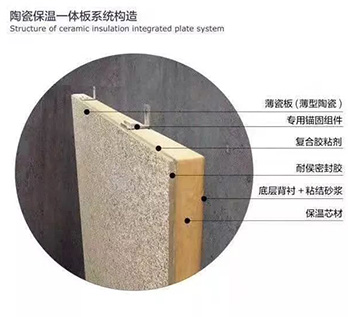 薄陶瓷保溫裝飾一體板的系統特性優異明顯,陶瓷薄板保溫裝飾一體板是由陶瓷面板、保溫層、膠粘劑、底襯組成,是一種新型模塊化復合建筑材料,整個系統由保溫裝飾復合板→合金錨扣件→粘結系統→封閉防水系統→排氣系統組成。系統集“保溫隔熱、防火防水、裝飾美觀、施工便捷、安全綠色”為一體。是極具性價比和明顯優勢的高檔外墻保溫裝飾材料。
