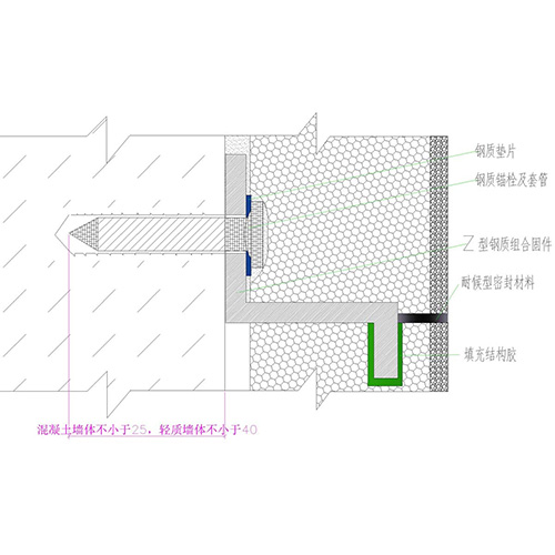 6.5.固件使用數量標準:固定輕瓷保溫裝飾板的錨固件當建筑物高度在27m以上時,固定件的設置為4個/㎡,27 m以上不少于6~8個/㎡;